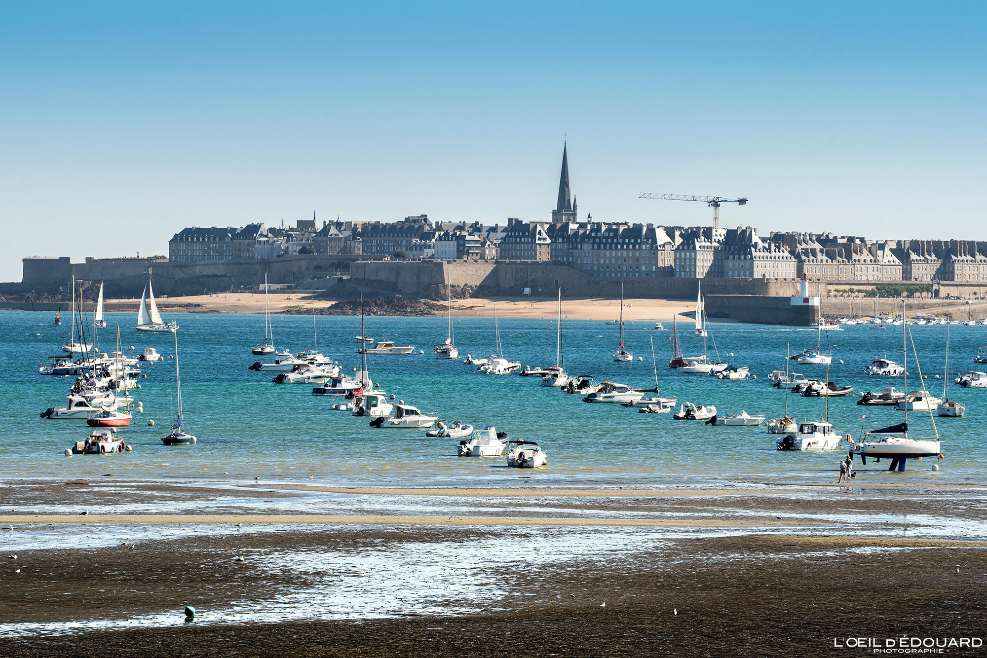 la plage du Prieuré à marée basse, face à Saint-Malo