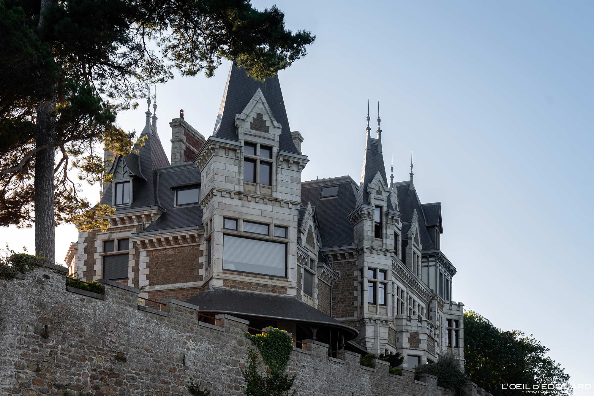 Après la Grande Déflation (entre 1873 et 1896) et jusqu’à la 1ère Guerre Mondiale, la France et l’Angleterre jouissent d’une certaine prospérité. Enfin… la bourgeoisie et l’aristocratie, beaucoup moins le prolétariat (leurs contemporains du East London sont bien loin de ça et le Front Populaire viendra plus tard pour les congés payés). En parallèle des établissements de groupe, les villas ont également bourgeonné comme au printemps sur le littoral de la côte d’Émeraude. Des centaines de maisons Belle époque et autres châteaux sont alors construits pour les villégiatures. Aujourd’hui, 400 demeurent, classées dans une zone de protection du Patrimoine Architectural, Urbain et Paysager. J’ai localisé les principales sur ma carte de Dinard ici.
