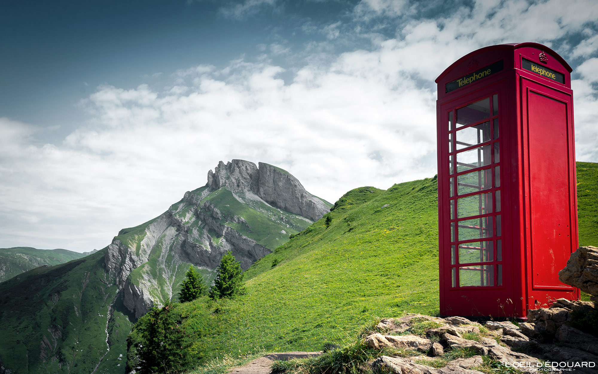la cabine téléphonique anglaise dans le Beaufortain © L’Oeil d’Édouard / Instagram 📷
