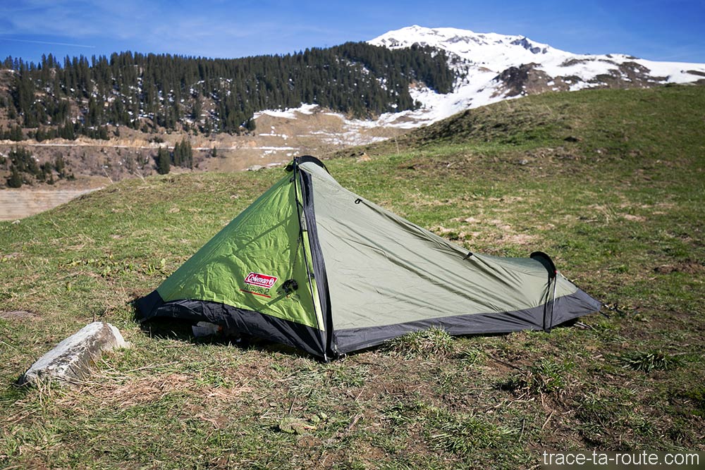 “Qu’il est long cet hiver !!”. Comme à chaque printemps, j’étais pressé de reprendre les sentiers et en plus, je venais de m’équiper d’une nouvelle tente. Du coup, j’ai craqué et je me suis fait une petite virée dans le Beaufortain, histoire de prendre l’air (et ce fut le cas de le dire !!). C’est donc à cette occasion que j’ai étrenné et testé mon nouveau matériel de camping, lors d’un bivouac sur les bords du Lac de Roselend. Même si elle n’est pas la plus compacte du marché, la tente Coleman Aravis 2 est rentrée facilement dans mon sac à dos 65L (en même temps, on ne part pas bivouaquer avec un petit sac à dos de 10 litres…).
